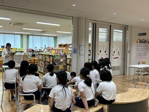 3年生が図書室で学習していました。新しい図書室はオープンで、読書を楽しんでいるこどもたちの様子がよく見えます。「何冊借りたの?」と聞くと「3冊だよ」「こういう本借りたよ」と教えてくれました。