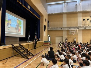 あと一か月もすると夏休みに入ります。学校でも学校外でも安全に日常が送れるよう今日は大森警察署の方を招いて、安全教室を開きました。みんな一生懸命にお話をうなずきながら聞いていました。