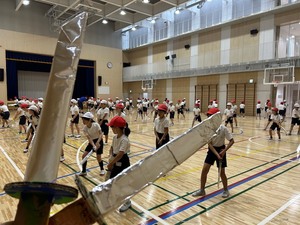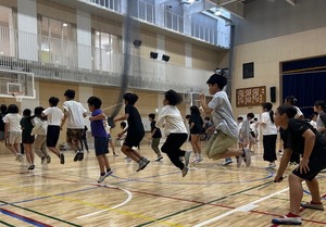 来月11日土曜日は運動発表会です。今年は150周年記念運動会として、周年をお祝いしてのプログラムを入れています。体育の時間で練習を始めている学年もあります。まだまだ暑いですが、体育館などの室内で快適に運動しているこどもたちです。