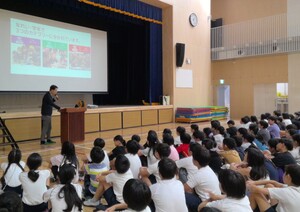 毎日の生活に欠かせない水。今日は4年生が使った水がその後どのように処理されているのか学習していました。再生処理センターの方の分かりやすくてテンポのいいお話と具体的な実験を通して、使用した水が処理水として海に流され、さらにそれらが雨水となって循環していることなどを学びました。これからも水を大切に使っていくことの意識の向上にもつながったようです。