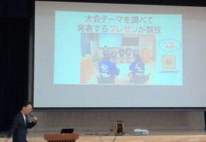 集会委員会による児童集会が体育館で行われていました。じゃんけん列車のBGMにタイブレットを活用しています。いろいろな場面で必要な時に必要な使い方ができるよう進めています。