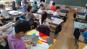 やっと涼しくなり秋らしい気候になってきました。教室でも創造的活動に集中できる気候です。1年生、5年生の図工の時間はいずれも個性あふれる作品がたくさん見られました。