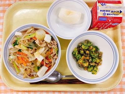 牛乳 麻婆あんかけ焼きそば 中華サラダ 牛乳寒天