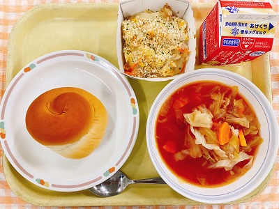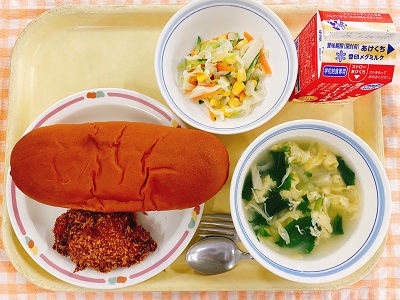 牛乳 ミルクパン かぼちゃコロッケ ミネストローネ