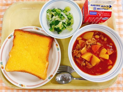 牛乳 フレンチトースト ポークビーンズ グリーンサラダ