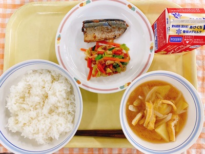 牛乳 ご飯 さんまの姿煮 おかか和え みそ汁