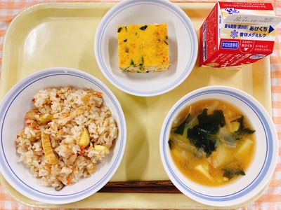 牛乳 吹き寄せご飯 擬製豆腐 みそ汁