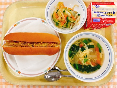 牛乳 中華ドッグ ごまドレッシングサラダ 大根と卵の中華スープ