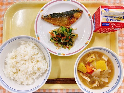 牛乳 ご飯(ななつぼし) さばの照り焼き 磯和え さつま汁