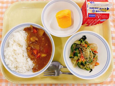 牛乳 チキンカレーライス 海藻サラダ みかん