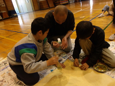 革職人の中本裕将さんをお招きして、こどもにアドバイスをしながら活動しています。