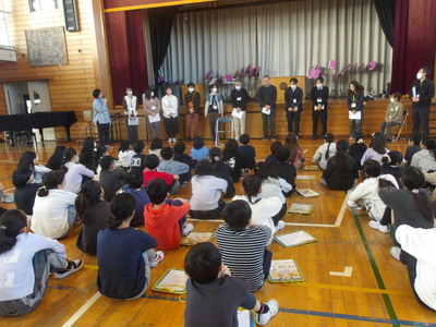 飾らない言葉で、リアルな話をしてくださる三輪さんに児童も惹きつけられます。