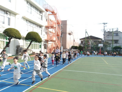 寒空のもと、こどもたちは元気に走っていました。