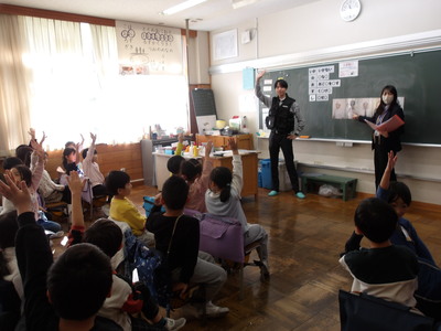 「いかのおすし」について、アルソックさんが低学年に犯罪から身を守ることについて教えてくださいました。