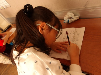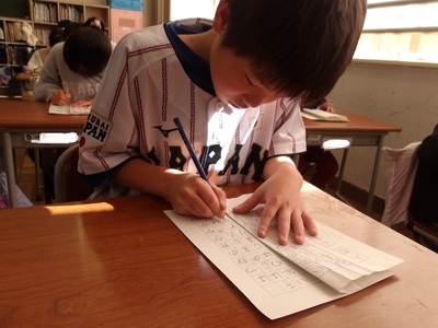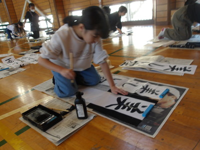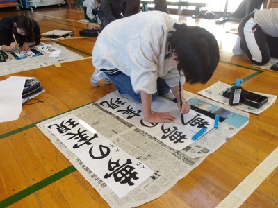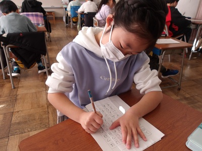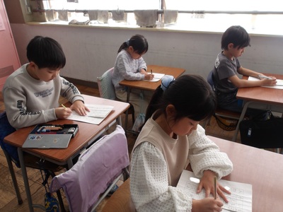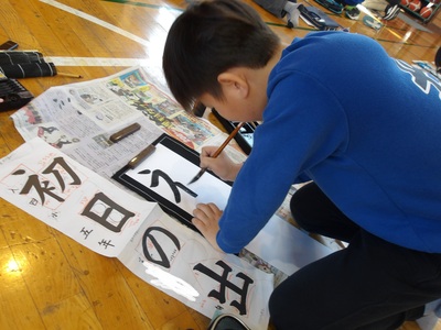 2年生「はつ日の光が・・・」硬筆です。意外と難しく、字が擦れないように頑張りました。