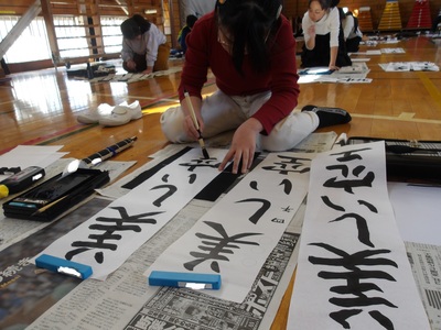 3年生「お正月」初の書初ですが、元気いっぱいで明るい正月です。