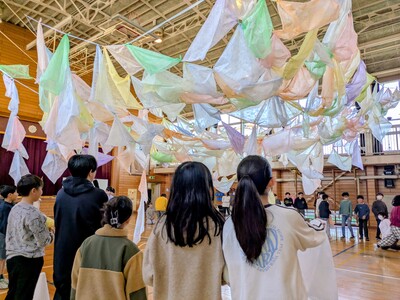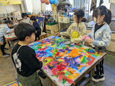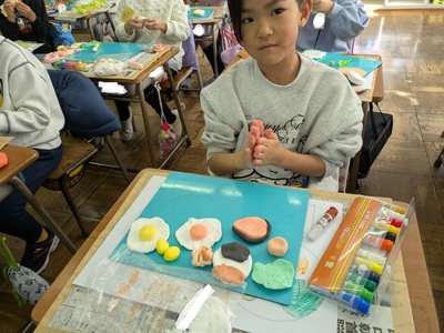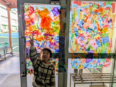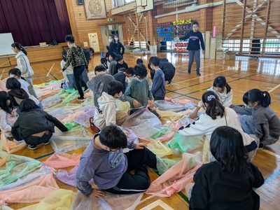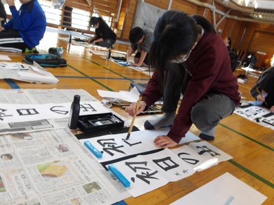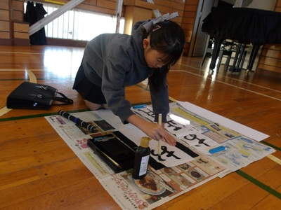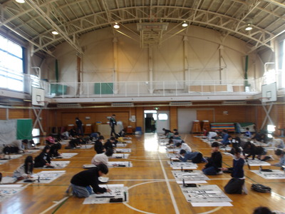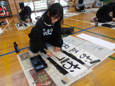 4年生「美しい空」正月らしい音楽がBGMで流れていました。