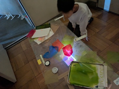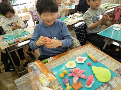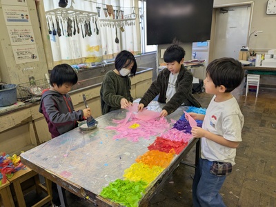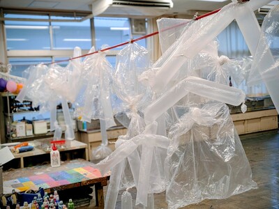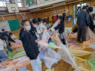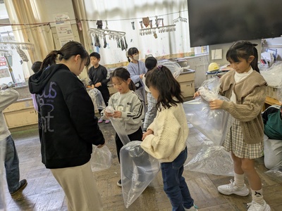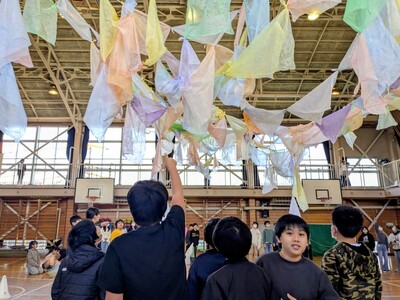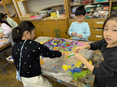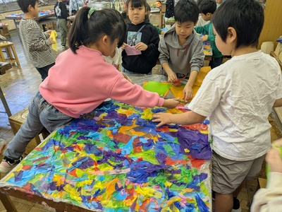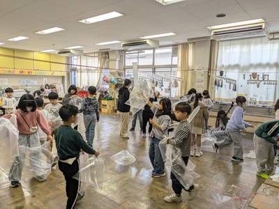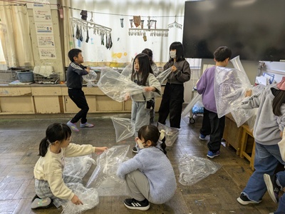 たんなるビニール袋もこどもの手にかかれば、あっという間に作品に変わります。