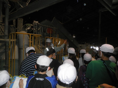 王子マテリア江戸川工場では古紙が再生紙に変わるまでの仕組みを実際に工場を見て見学しました。