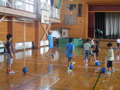 2年生、3年生は、大きく回っている長縄をよく見て、タイミングを合わせて跳ぶことができる子どもが多いです。