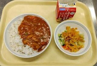 献立:ハッシュドポーク 牛乳 パリパリサラダ産地:〇にんにく・・・青森 〇しょうが・・・高知 〇玉ねぎ・・・北海道 〇にんじん・・・北海道 〇きゅうり・・・秋田 〇キャベツ・・・岩手