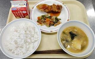 献立:麦ごはん 牛乳 魚の甘酢あんかけ かぶの三色和え はくさいの味噌汁産地:〇玉ねぎ・・・北海道 〇にんじん・・・千葉 〇小松菜・・・茨城 〇しょうが・・・高知 〇かぶ・・・千葉 〇白菜・・・茨城