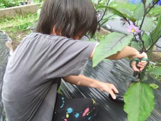 生活の『大きくそだてわたしの野さい』で育てているナス、トマト、ピーマンですが、花が咲き、少しずつ実がなってきました。ナスの成長が早く、21日(火曜)に3本収穫することができました。2年生の育てている野菜。順調に育っています。
