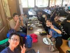 移動教室最後のイベントはお昼ご飯です。 先ほど釣った魚を松井農園の方が焼いてくださり、塩焼きの味を堪能しました。 やはり苦労して釣った魚の味は格別なようで、サービスで焼いてくださったお代わり分には、希望者の行列ができるほどでした。 デザートには、リンゴやブルーベリーのソフトクリームまで食べて、笑顔いっぱいの昼食となりました。 さぁ、全ての行程が終わりました。 あとは、全員で元気に帰るのみです!