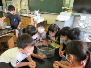 さらには、図工室にいるカメにも人気が集まっていました。カメの足や首の動きに目が離せなくなり、「ずっとみていてもあきないね。」ととても楽しそうでした。