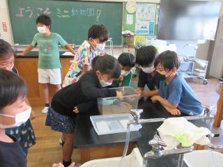 10月4日から9日までの4日間、飼育栽培委員会の5・6年生が『ミニ動物園』を企画してくれました。今日は、1年生が中休みと昼休みに参加することができ、みんなで見に行ってきました。どんな生き物がいるのかは、行ってみてからのお楽しみ・・。1年生は、わくわくどきどきしながらも、大勢が集まり楽しい時間を過ごすことができました。