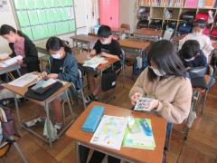 4年生では、「垂直と並行、四角形」という単元を学習しています。垂直に交わる直線や平行な直線を三角定規を用いて作図します。他にも平行四辺形を三角定規やコンパスを使って作図します。もちろん、それだけでなく、これからの図形の学習の基礎となる四角形の定義や性質も学習します。今回は単元のまとめで、平行四辺形を敷き詰めて、いろいろな形を作るという学習をした際のものです。みんな、思い思いの図形を作ることができました。
