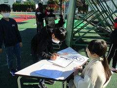 事前の学習で、防災訓練に参加する際に見たいことや知りたいことを交流しました。「避難所はどんな状況なのか。」「怪我人やペットを連れた人への対応はどうするのか。」「自分たちは冷静に避難できるのか。」など、様々な疑問をもつことができました。