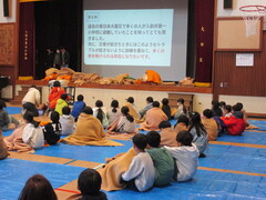 4年生の国語では、「もしものときにそなえよう」という、防災についての学習を行っています。そこで、12月17日(水曜)に行われる、6年生の「こども防災訓練」のリハーサルに、4年生も避難者役として参加させていただきました。