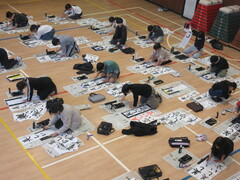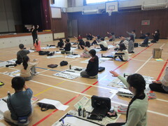また、4年生は1月9日(金曜)に、学年で体育館に集まって書初めを行いました。