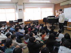今回はいよいよ学年での合同練習です。気持ちはしっかりもって演奏し始めたのですが、初めはリズムがなかなか合わず、音がばらばらに聞こえてしまっていました。合奏の難しさを痛感しました。その後、何度か練習を重ねる中で、音楽の先生から、「指揮者をよく見ること」を教えていただきました。そのことを意識しながら演奏することで、本当にだんだんと学年全体の音楽がそろってきたのです。こどもたちも、心をそろえて演奏することの楽しさに気付いた様子で、演奏や表情がみるみるうちに変わっていきました。