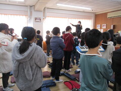 4年生は、6年生を送る会での全校合唱「グッデイ・グッバイ」に合わせて、楽器での演奏を行う予定です。リコーダーや鍵盤ハーモニカはもちろん、大太鼓や小太鼓、木琴やグロッケンなど、様々な楽器を使います。こどもたちも、各クラスの音楽の授業で、パートごとに分かれて一生懸命練習してきました。