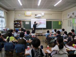まずは、養護教諭から3年生の歯の状況や、なぜむし歯になるのか説明を受けました。