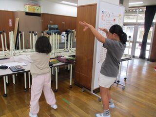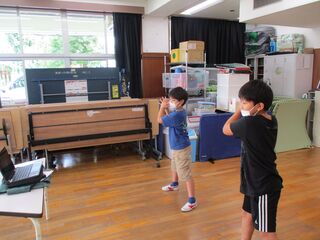 ダンスの練習は多目的室を使って、曲に合わせて自分たちで振付をしたり、動きを揃えたりしていました。