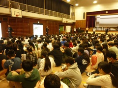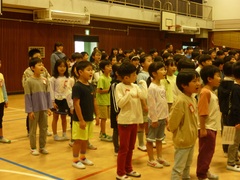 10月16日木曜日は音楽朝会が行われ、学芸会の児童鑑賞日のオープニングで歌う「幕をあける歌」の練習をしました。この曲は、ミュージカル「はだかの王様」のテーマソングで、アップテンポの小気味いい歌です。