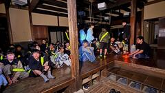 古民家にてナイトレクもとい「肝試し」です。ナイトハイクを行う前に、怪談を聞きました。馬場先生から始まった怖い話は校長先生で終わり、盛り上がりは絶好調。次はいよいよ肝試し。無事にお札を取って帰ってくることはできるのでしょうか。 道中には、引率の先生方が何人も潜んで行く手を阻みます。 ぜひ、家に帰ったら感想を聞いてあげてください。