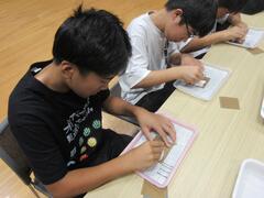 浅間縄文ミュージアムに到着しました。まずは、勾玉つくりです。よく削って磨いています。真剣なまなざしが素晴らしいです。勾玉をつくったあとは、館内見学です。社会の学習では習ったところであるため、実際に見ることができ、よい復習ができましたね。さらに近くの山、浅間山のことも知ることができましたね。