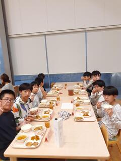 待ちに待った夕食です!照り焼きチキンにマフィン!とてもおいしそうですね!~今回のメニュー~・照り焼きチキン・かぼちゃの煮物・八宝菜・メイプルマフィン・なめこ汁・ご飯
