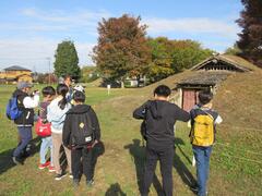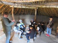 縄文時代の人々の住居の再現や出土した実物を見て、実感を深めていました。