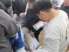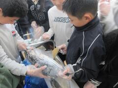 先週の水曜日は、水産業のさかんな鹿児島県の学習に入りました。その際、実物である天然かつおや養殖かんぱち、かつお節を提示しました。「冷凍されてとどいているから、釣った後にどうやってれいとうしているのかな」「冷凍しているのはどうしてなのかな」というように、実物に触れたからこその疑問が出てきました。この後の学習で、疑問が解決できるように勉強していきましょう。
