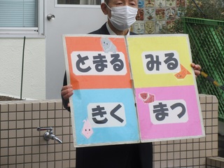 (1)とまる・・・道路を渡るときは、一度止まる。