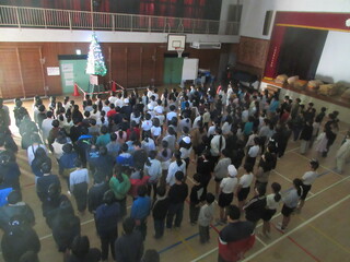 昨日、音楽朝会が行われました。もうすぐクリスマスということで、みんなでクリスマスソングを歌いました。