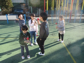 はじめは、遊び方が分からず困っている様子が見られましたが、上手な友達の真似をしたり、先生にコツを聞いたりして取り組むうちに、できるようになったことがとても嬉しかったようです。