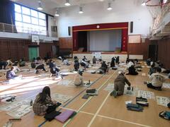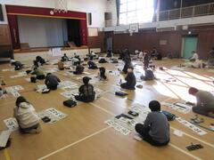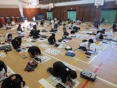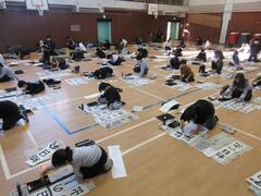 1/9に書き初めを体育館で行いました。どの子もすばらしい集中力で書き初めを行うことができました。年々、はらいやとめなどの技術だけではなく、絶妙な力加減を加えて書くことができるようになってきました。来年の書き初めでは、さらに成長した姿が楽しみです。