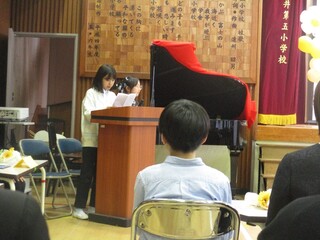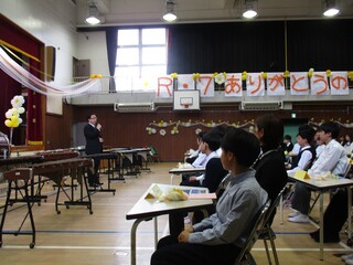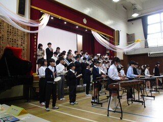 会の中では、今まで練習してきた「銀河鉄道999」の合奏を披露しました。真剣な表情で指揮を見て、一生懸命に演奏する姿は、さすが卒業を控えた最高学年だなと感心させられました。その後は、お世話になった先生方からお話をいただき、低学年の頃のエピソードや懐かしい思い出話を紹介してもらいました。他にも、保護者方が作成したスライドショーを見たり、日々の感謝の気持ちを書いた手紙を保護者に渡したりと多くのサプライズがありました。少し照れながらも、自分の言葉で手紙を読む姿には、胸を打たれました。