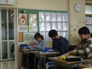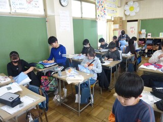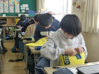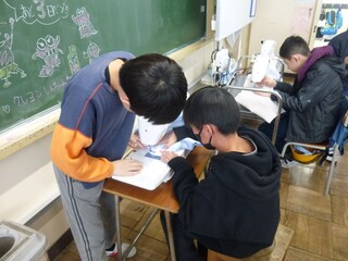 今回、ほとんどの作業は手作業で行いますが、一部ミシンを使って縫う部分もあります。こどもたちは、昨年度習ったミシンの使い方を思い出しながら、曲がらないよう慎重に縫い進めていたことが印象的です。完成までもう少し。最後まで丁寧に作業し、思い出に残る作品にしてほしいです。